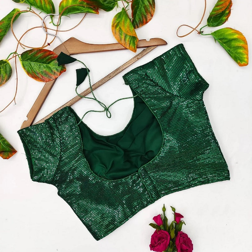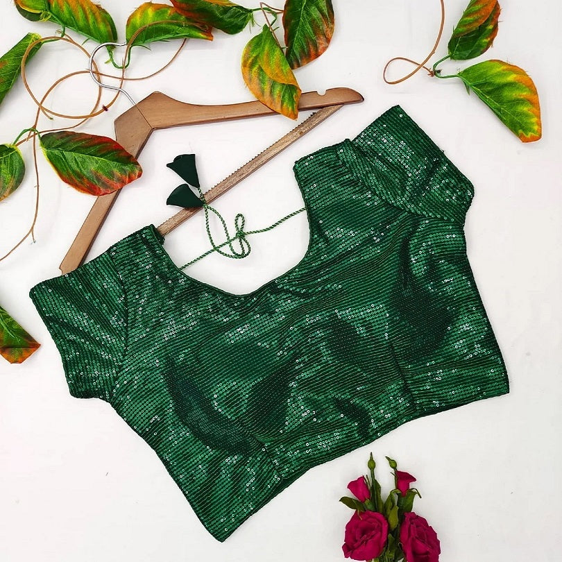 Round Neck Women Chinon Silk Sequence Work Readymade Blouse 14-RK14