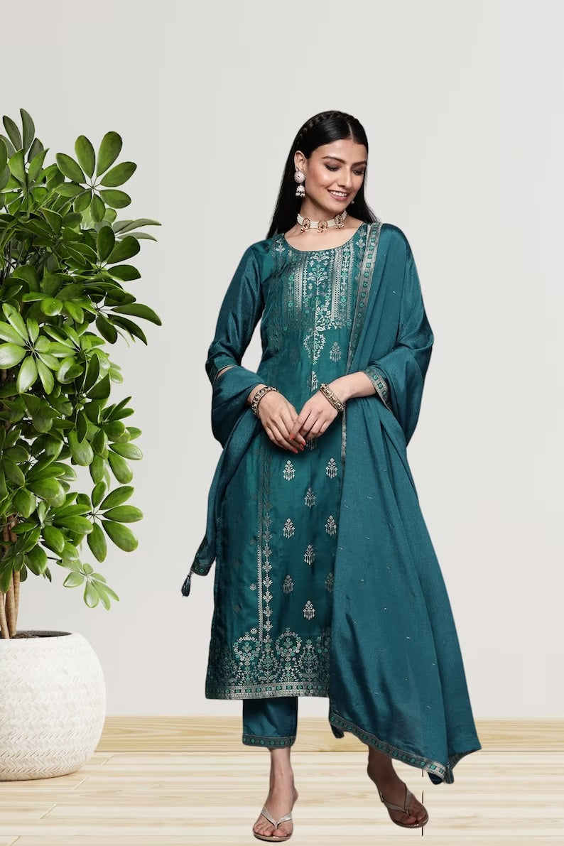 Viscose With Jacquard Work & Salwar Kameez With Dupatta