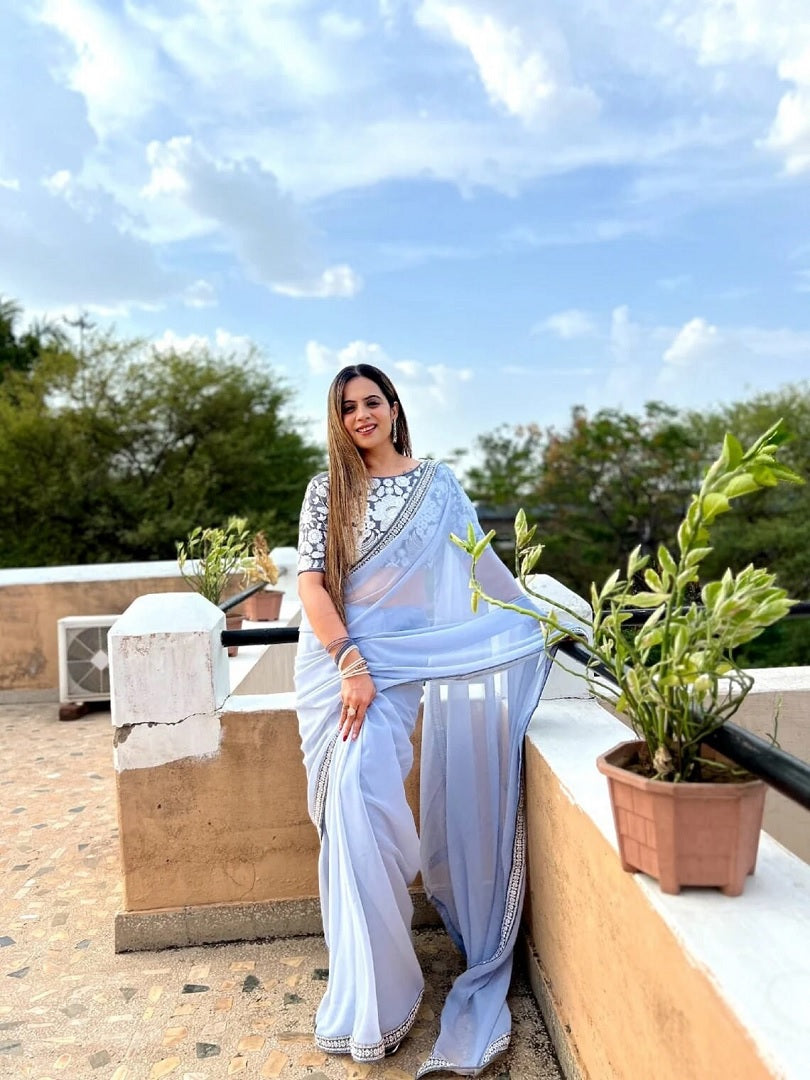 Georgette Embroidery Lace Work Saree
