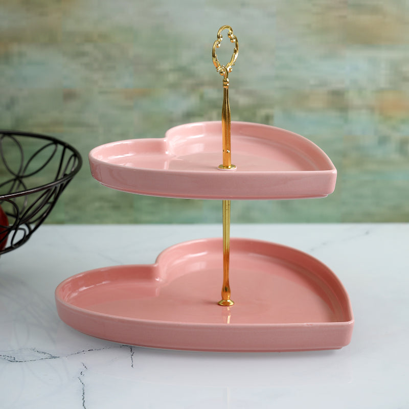 Sweetheart Pink Heart Shaped Ceramic Double Layer Platter
