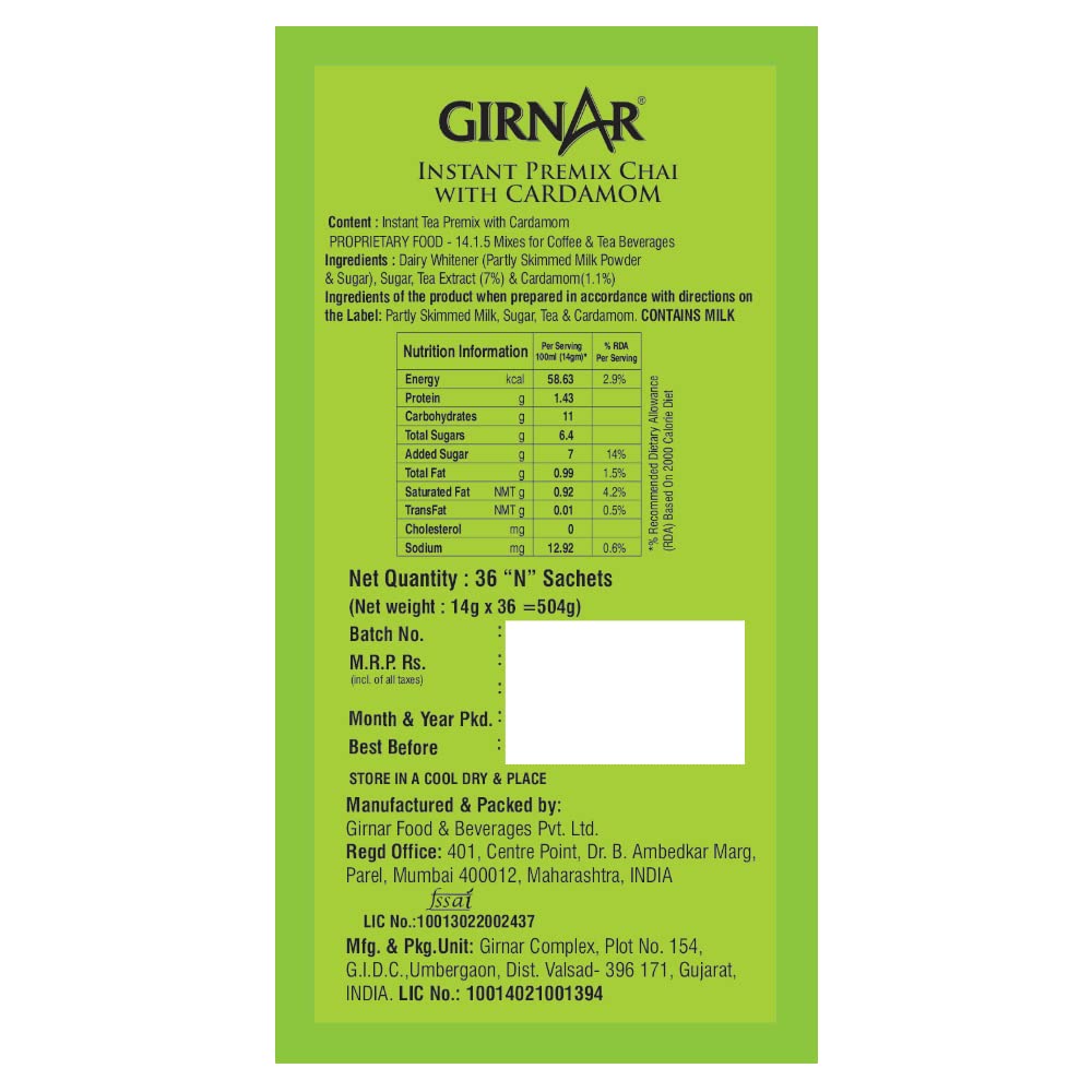 Girnar Cardamom Chai - 36 Sachets