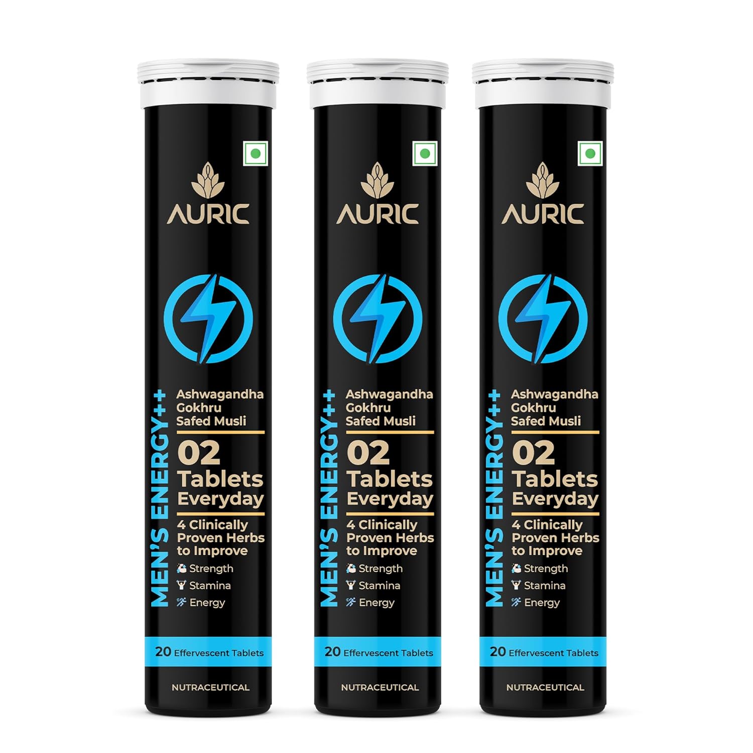 Auric Men’s Energy++ – Herbal Stamina & Vitality Support Fizzy Tablets (20 Tablets)