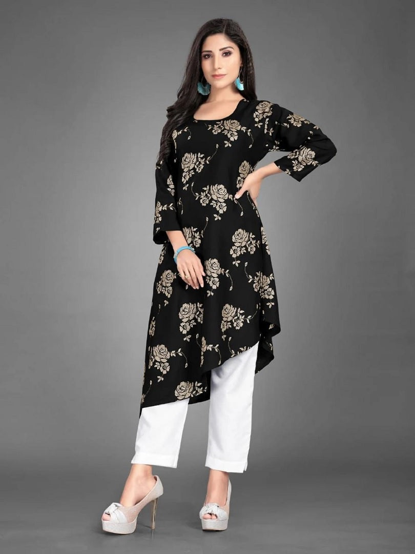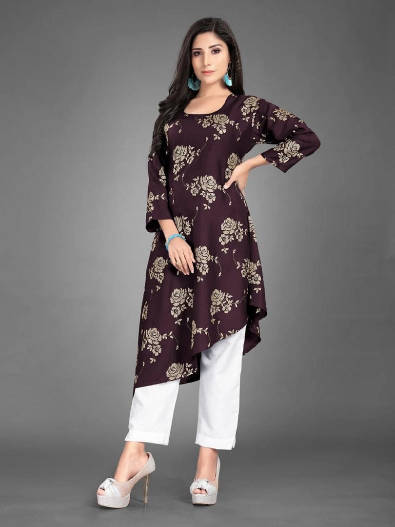 Casual Wear Rayon Cotton Foil Printed Full Stitched Kurti Pant 12-GT4