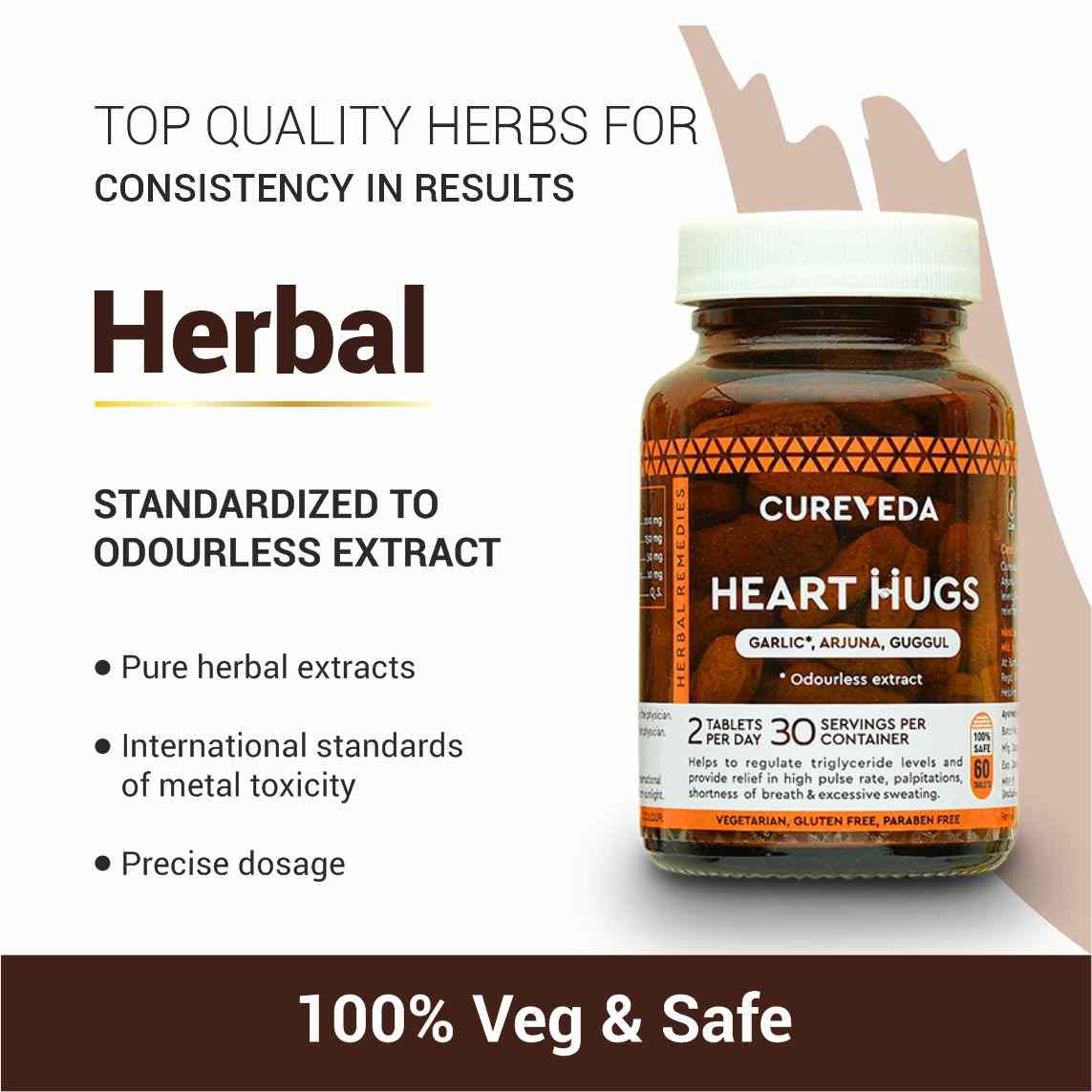 Cureveda Heart Hugs - Herbal Wellness Tablets for Cardiovascular Support (60 Count)