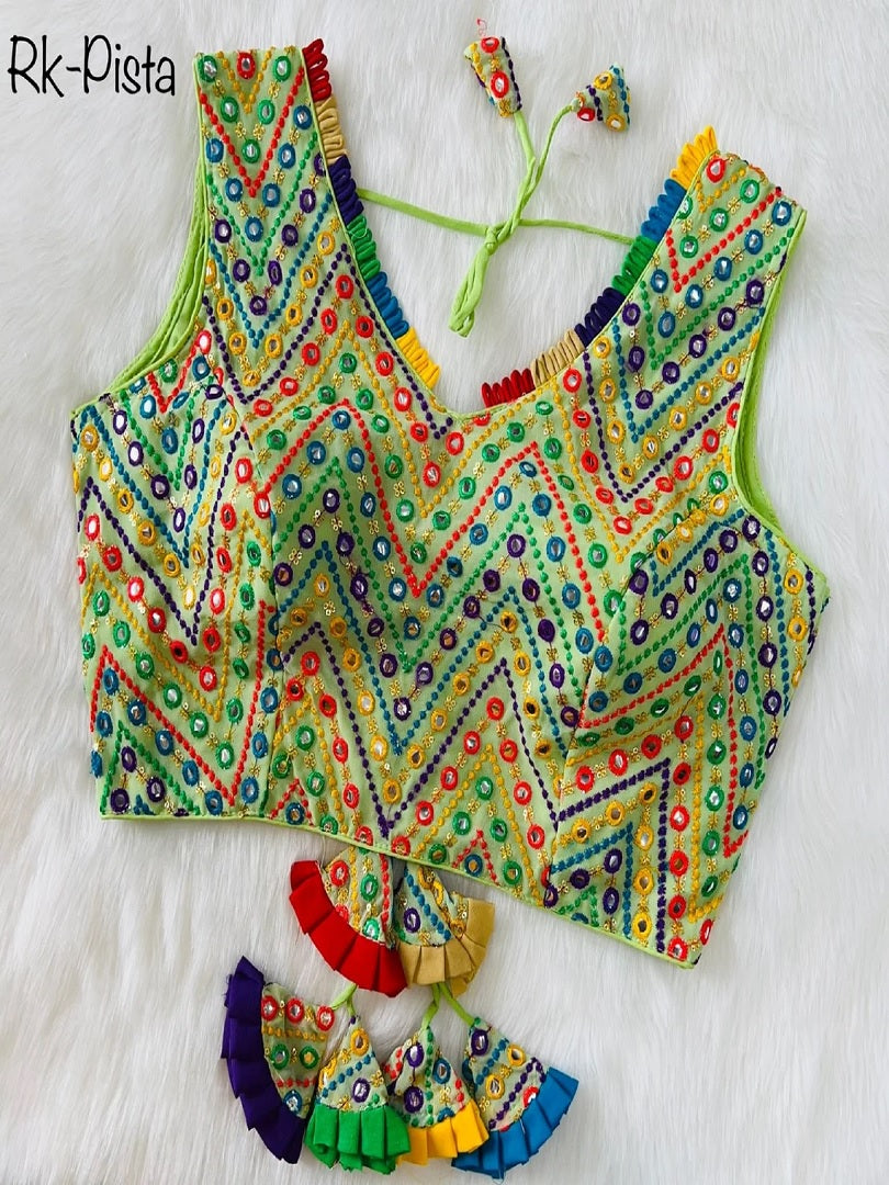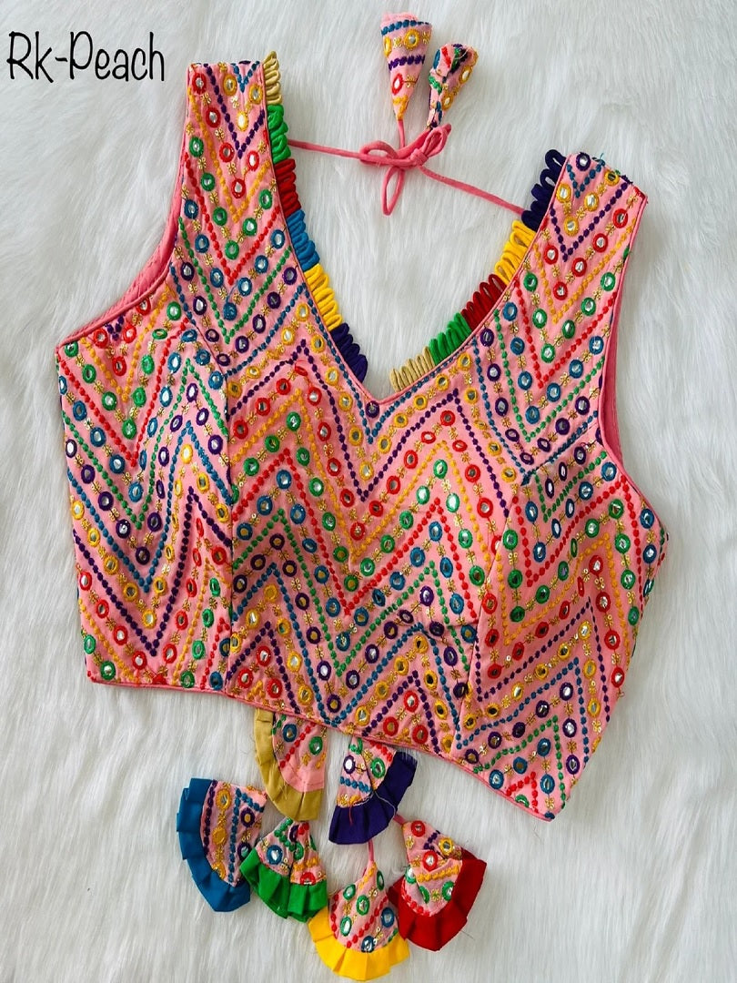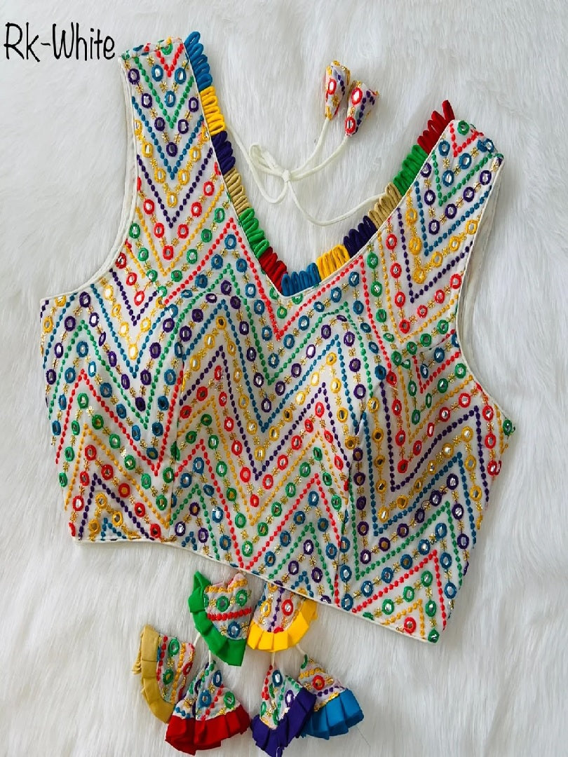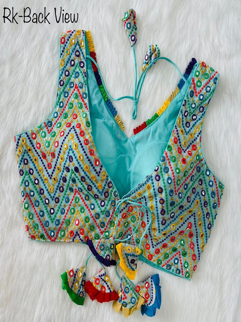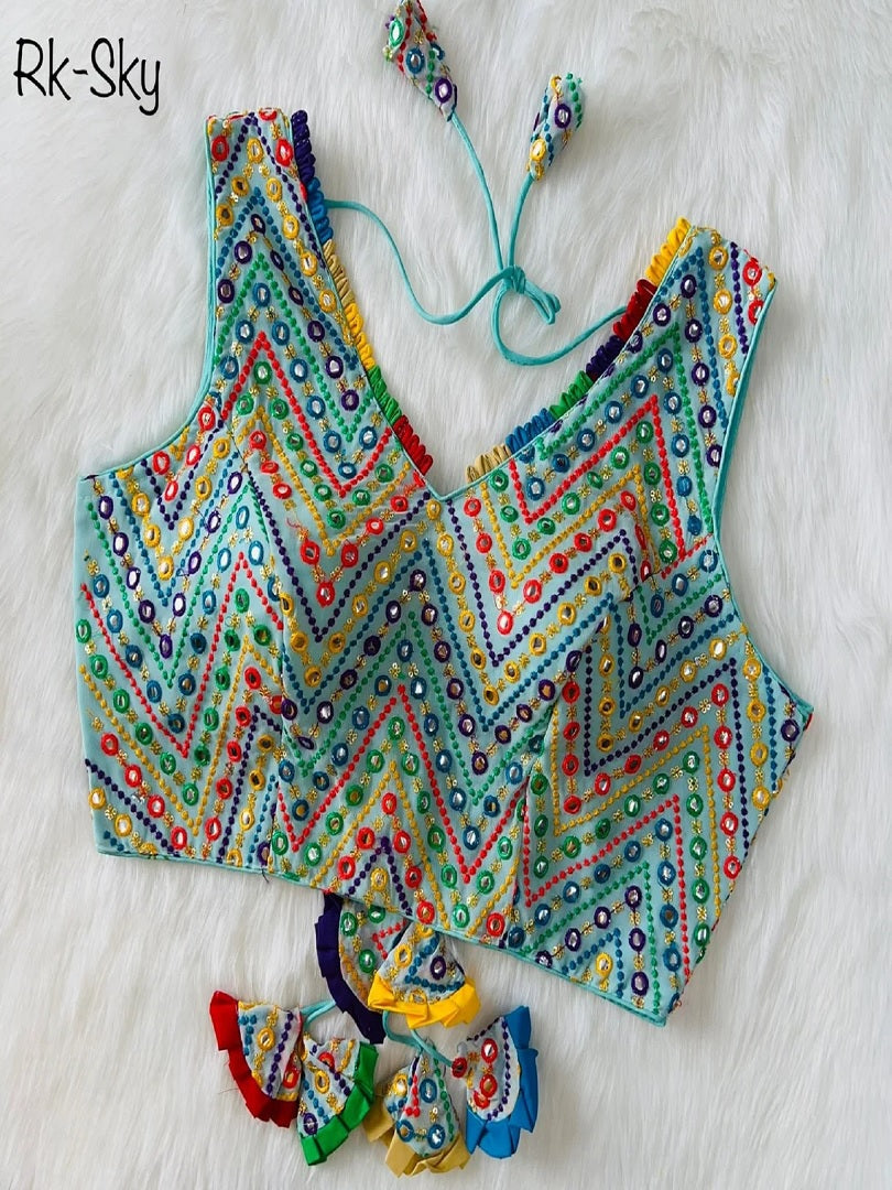 Faux Georgette Multi Color Work V Neck Full Stitched Blouse