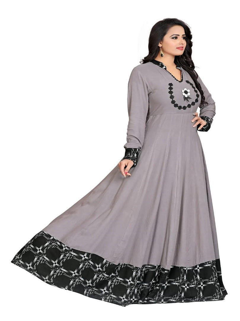 Grey Color Rayon Readymade Long Anarkali Kurti Gown Dress SV