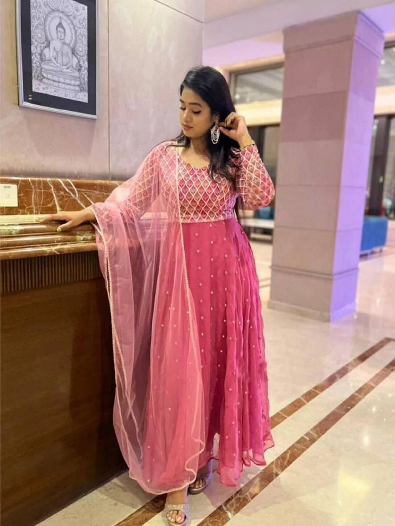 Women's Georgette Anarkali Suit With Dupatta Set Party Wear Dress SR